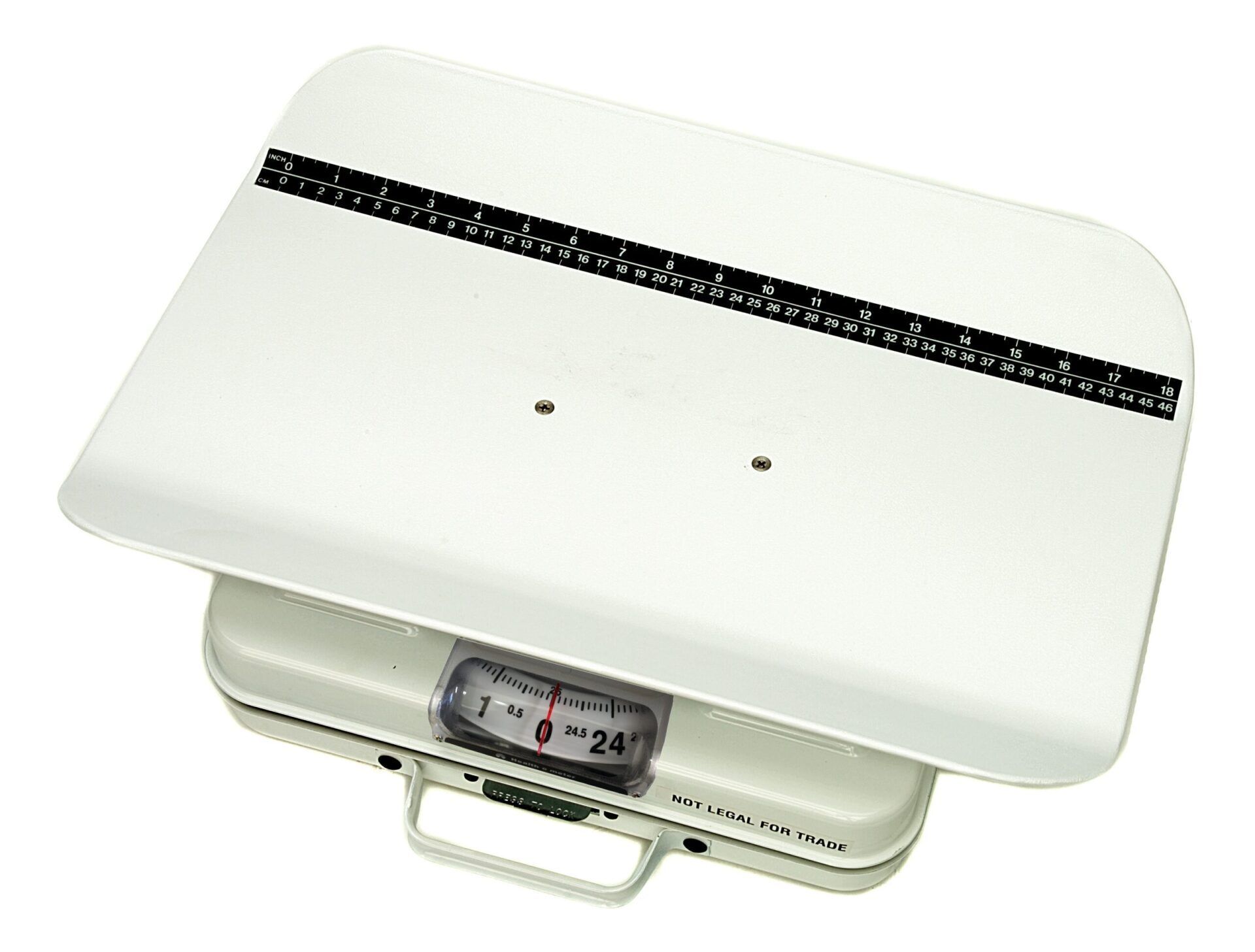 Disponible en diseños de kg o lb/kg , esta báscula para niños es fabricada en acero porcelanizado que soporta un brazo de acero vaciado sencillo y fuerte con doble lectura (lb/kg).