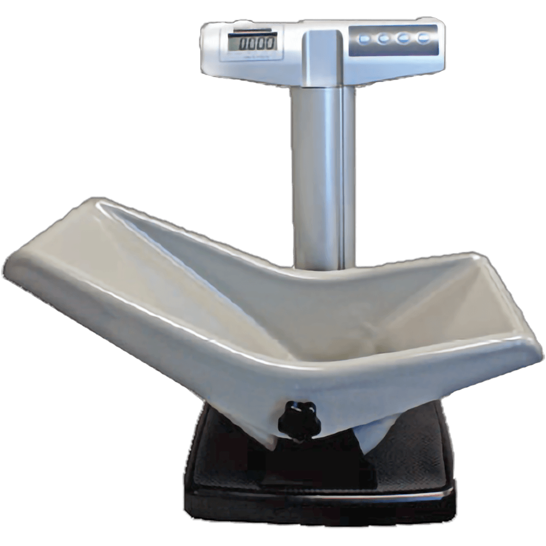 Aún los bebés más inquietos pueden ser pesados y medidos en forma rápida y segura en las básculas serie RL-DBS.
